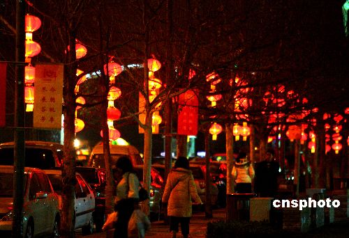 鼠年新春將至,北京一些生活小區(qū)張燈結(jié)彩,一派節(jié)日氣氛。隨著北京現(xiàn)代城市建設(shè)的發(fā)展,許多平房四合院逐漸被現(xiàn)代化的樓宇生活小區(qū)取代,每逢節(jié)日喜慶時(shí)節(jié),物業(yè)公司逐漸承擔(dān)起烘托節(jié)日氣氛的義務(wù)。中新社發(fā) 宋吉河 攝
