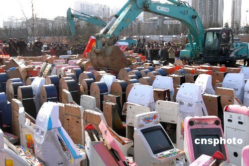 1月30日,中國(guó)農(nóng)歷鼠年春節(jié)前夕,河南洛陽(yáng)警方公開銷毀2367臺(tái)游戲賭博機(jī)。1月下旬,河南省洛陽(yáng)警方開展“利劍一號(hào)”行動(dòng),嚴(yán)厲打擊利用電子游戲機(jī)賭博違法犯罪活動(dòng),此次行動(dòng)中查處利用游戲機(jī)違法賭博場(chǎng)所156家。