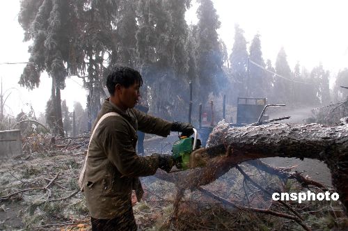 連日來,粵北始興縣持續(xù)雨雪及低溫冰凍天氣,造成該縣大片竹木被積雪壓斷,初步統(tǒng)計(jì)嚴(yán)重受災(zāi)山林面積近100萬畝。目前,該縣已派出工作組趕赴災(zāi)區(qū),查看災(zāi)情,慰問災(zāi)民,組織群眾開展救災(zāi)工作。中新社發(fā) 馮昶 攝
