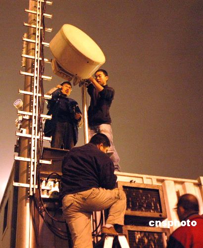 圖為廣州移動(dòng)通訊運(yùn)營(yíng)商在廣州火車站廣場(chǎng)啟動(dòng)應(yīng)急通信設(shè)備,確保網(wǎng)絡(luò)暢通。