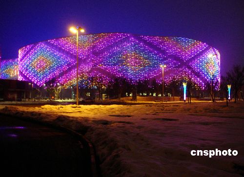 2008年2月6日晚,被稱為蘇州“鳥巢”的蘇州科技文化藝術(shù)中心璀璨奪目,變幻多姿的燈飾絢麗迷人,營造出濃厚的節(jié)日氣氛。中新社發(fā) 王建康 攝