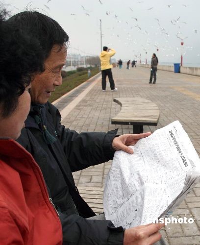 2月18日,兩位云南省昆明市民在滇池邊看報(bào)紙上刊出的昆明官員聯(lián)系方式。日前,昆明市決定向社會(huì)公布該市官員職務(wù)分工情況和聯(lián)系電話,《昆明日報(bào)》整版公布信息后受到昆明市民熱烈搶購。中新社發(fā) 李一波 攝