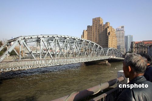 3月1日零時,上海外白渡橋準時封閉交通,它的整修工程也將隨之展開,擇日整體移入工廠進行大修。中新社發(fā) 湯彥俊 攝