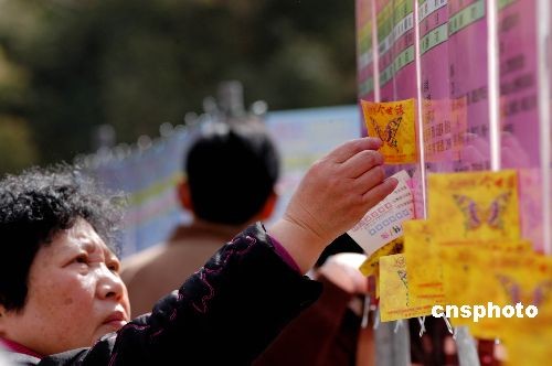 3月2日,江蘇鎮(zhèn)江市大市口廣場(chǎng)舉辦了“萬(wàn)人相親”會(huì)活動(dòng),1000多個(gè)相親簡(jiǎn)歷吸引了眾多市民。中新社發(fā) 陶春 攝