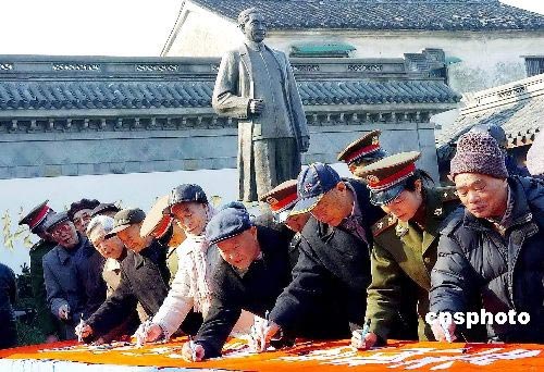 3月4日,浙江紹興市各界和杭州市的1000多名干部群眾、解放軍官兵來(lái)到紹興周恩來(lái)紀(jì)念館舉行重溫入黨誓言,簽名學(xué)習(xí)總理風(fēng)范紀(jì)念活動(dòng)。3月5日是周恩來(lái)誕辰110周年。中新社發(fā) 袁云 攝
