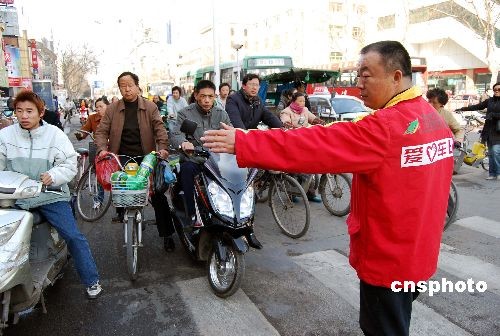 3月4日,一名交巡警對“愛心車隊”的哥進(jìn)行“崗前”培訓(xùn)。當(dāng)日,江蘇省鎮(zhèn)江市“愛心車隊”的哥的姐,來到該市京口區(qū)道口“客串”交巡警。他們通過崗位執(zhí)勤、發(fā)放宣傳資料等形式,用實實在在的角色轉(zhuǎn)換與體驗,進(jìn)一步增強(qiáng)維護(hù)道路交通安全和良好交通秩序的自覺性。中新社發(fā) 汪永祥 攝