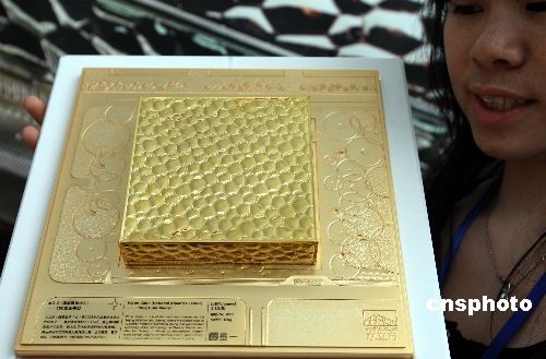 三月五日,金一文化發(fā)展有限公司首款純金水立方模型產(chǎn)品在北京國家游泳中心舉行首發(fā)式。水立方系列模型產(chǎn)品包括純金、純銀和水晶、琉璃等四種材質(zhì)。每款都是全球限量發(fā)行,具有較高的紀念價值、鑒賞價值及收藏投資價值。中新社發(fā) 任海霞 攝