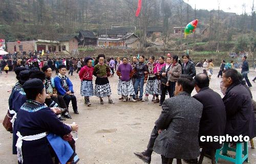 3月12日,貴州省清鎮(zhèn)市麥格苗族布依族鄉(xiāng)一年一度的 “銀杏歌節(jié)”在麥格村場(chǎng)壩上舉行。萬(wàn)余名身著盛裝的苗族、布依族同胞用甜美的歌聲、歡快的舞蹈歡慶節(jié)日。中新社發(fā) 申時(shí)進(jìn) 攝