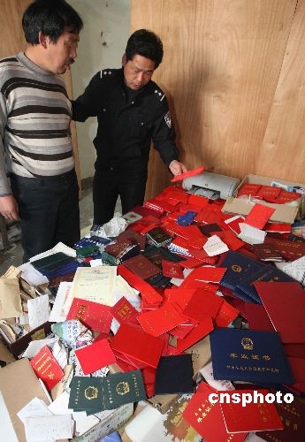3月19日,河南洛陽警方在一民宅內(nèi)將一伙制造假證的犯罪集團逮個正著。行動中查獲各類假證7大類145種共計10000多份,現(xiàn)場還查獲印章、鋼印、電腦、打印機等一批制假造假設(shè)備。在事實面前,犯罪嫌疑人對犯罪事實供認(rèn)不諱。中新社發(fā) 曾憲平 攝