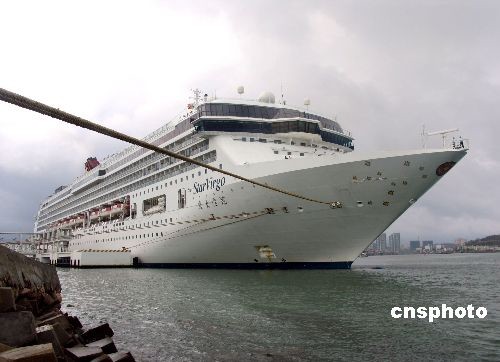 4月1日,馬來(lái)西亞麗星郵輪公司旗下大型豪華郵輪“處女星”號(hào)(superstar virgo)正式接替“天秤星”號(hào)首航三亞,這是一艘目前航行亞洲市場(chǎng)最大、最豪華的郵輪。據(jù)了解,該輪接替“天秤星”號(hào)執(zhí)行4月至10月“香港—三亞-越南-香港”定期航線,排水量7.6萬(wàn)噸,滿載客2800人,船員1400人。據(jù)三亞邊防檢查站介紹,“處女星”號(hào)2008年將計(jì)劃停靠三亞25個(gè)航次,平均每7天一個(gè)航班。中新社發(fā) 段中偉 攝