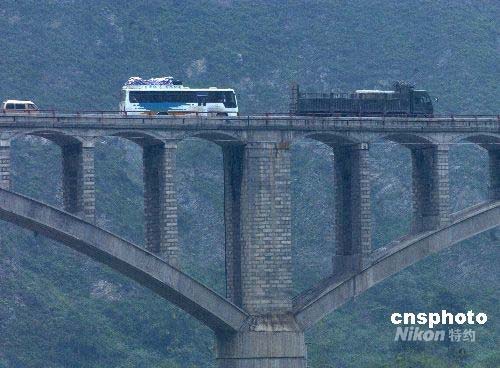 汶川縣位于四川省西北部,阿壩州境東南部的岷江兩岸,地質(zhì)構(gòu)造復(fù)雜,有“川西鎖鑰”和“西羌門戶”之稱。通往汶川縣的岷江橋可謂生命橋。中新社發(fā) 賈國榮 攝