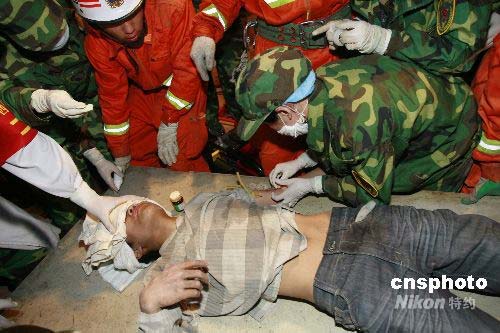 圖:四川官兵成功營(yíng)救被困105小時(shí)幸存者
