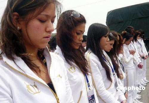 各國(guó)模特選手向汶川大地震遇難者致哀