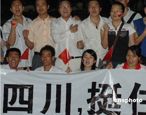 圖:中國"八零后"為四川災(zāi)區(qū)群眾加油打氣