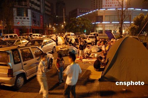 圖:成都市民再次夜宿街頭躲避余震