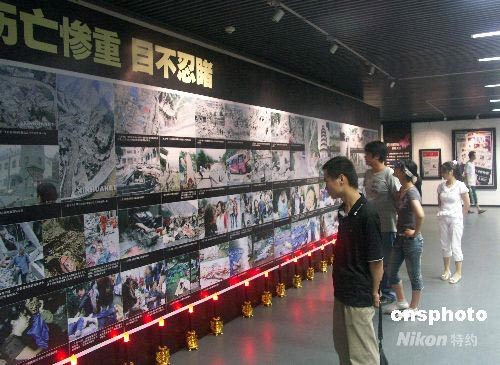 5月25日,眾志成城,抗震救災——四川汶川5.12地震大救援特別展在南京展覽。本次展覽共展出了600多張救災照片和5部音像資料片,展現(xiàn)了中華民族面對災難所表現(xiàn)出的英雄氣概。圖為觀眾在觀看汶川地震大救援圖片。中新社發(fā) willis84 攝