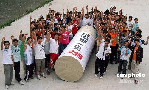 5月31日,安徽淮北市桓譚中學(xué)的學(xué)生們制作了一支巨型“香煙”模型。全校700多名學(xué)生在這支寫有“拒吸第一支煙”的模型上簽名,立志遠(yuǎn)離煙草。 2008年5月31日是世界衛(wèi)生組織發(fā)起的第21個(gè)世界無煙日。本次無煙日的主題是“無煙青少年”,口號是“禁止煙草廣告和促銷,確保無煙青春好年華”。中新社發(fā) 李博 李春輝 攝