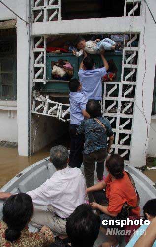 圖:廣西柳州民警轉(zhuǎn)移被洪水圍困居民