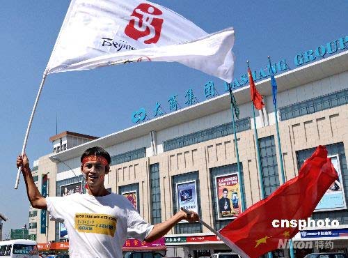 7月12日上午8時許,2008北京奧運火炬在黑龍江省大慶市傳遞。眾多大慶市民前來為奧運火炬吶喊助威。中新社發(fā) 濱海之光 攝