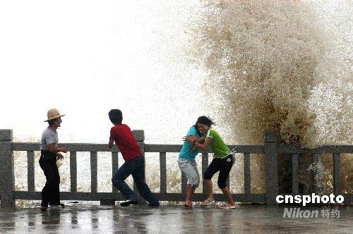 7月20日,江蘇連云港由于受今年第七號臺風(fēng)“海鷗”和北方南下的弱冷空氣的共同影響,海面刮起7至8級東北大風(fēng),沿海出現(xiàn)巨浪巨涌,洶涌的海浪與岸邊的礁石相撞擊,卷起層層浪花。中新社發(fā) 王春 攝