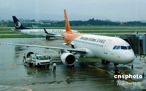隨著臺(tái)風(fēng)“鳳凰”漸行漸遠(yuǎn),七月三十日,福州機(jī)場(chǎng)航班全面恢復(fù)正常,迎來旅客出行高峰。截至十八時(shí),已有五十八個(gè)航班正常起飛。由于“鳳凰”登陸地點(diǎn)在長(zhǎng)樂機(jī)場(chǎng)附近的福清市,長(zhǎng)樂航空港倍受影響,二十八日和二十九日,共有一百七十二個(gè)航班被取消,造成大量旅客滯留。圖為等待起飛的深圳至大阪的中轉(zhuǎn)飛機(jī)。中新社發(fā) 龍景定 攝