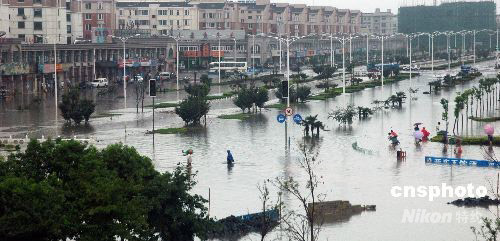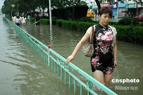 2008年7月31日20時起,受今年第8號臺風(fēng) “鳳凰”外圍的云系和風(fēng)力影響,“鳳凰”雨襲擊安徽巢湖市。至8月1日15時,“鳳凰”雨狂襲安徽巢湖市城區(qū),降雨量已超過240mm以上,造成市內(nèi)多處低洼地段發(fā)生嚴(yán)重內(nèi)澇,部分街道成了一片汪洋,大部分路段被水淹沒,進入市區(qū)的高速路口因積水過深臨時封閉,給群眾出行和生活帶來了很大影響。此次長時間的強降水,給該市城區(qū)防洪排水帶來壓力。中新社發(fā) 徐振華 攝