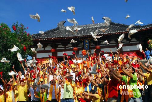 2008年9月6日至7日,海南省血液中心組織137名海南省2006-2007年國家無償獻(xiàn)血奉獻(xiàn)獎金獎獲得者和促進(jìn)獎獲得者,到三亞南山文化旅游區(qū)參加以“奉獻(xiàn)讓我如此美麗”為主題的“菩提之旅”。獻(xiàn)血者點(diǎn)燃祈福蓮花燈、放飛和平鴿,并共植19棵菩提樹,建成全國首創(chuàng)的無償獻(xiàn)血功德林。中新社發(fā) 善平 攝