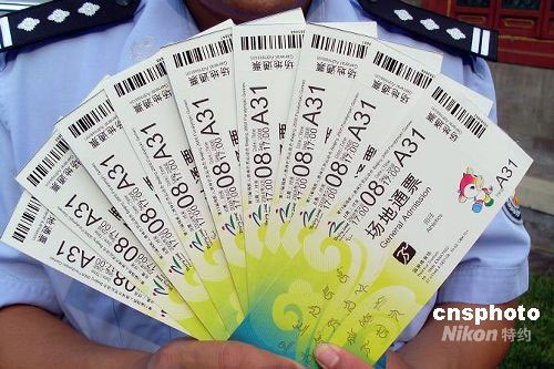 近日,北京海淀警方抓獲一向游客高價(jià)倒賣殘奧會(huì)門票的違法行為人王某,收繳鳥(niǎo)巢殘奧會(huì)田徑比賽通票10張。此案目前正在進(jìn)一步審理中。中新社發(fā) 海宣 攝