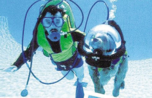 主人艾爾巴和寵物狗穆特雷一起潛水。