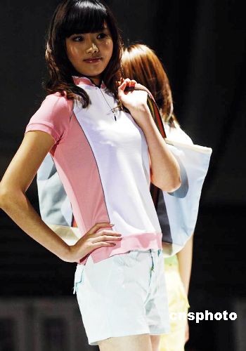 10月22日晚,2009春夏中國T恤流行趨勢發(fā)布暨“天然杯”第六屆國際T恤設計大賽作品展在上海舉行,該大賽吸引來自韓國漢陽大學、ESMOD國際服裝學院、萊弗士服裝學院等近百所高校的近3000幅作品。圖為模特展示院校T恤設計優(yōu)秀作品。中新社發(fā) 錢興強 攝