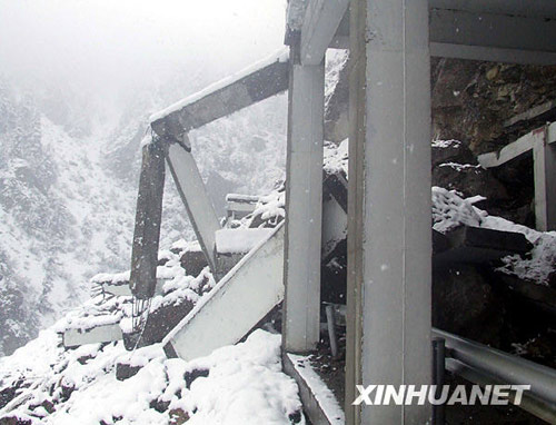 川藏公路然烏溝防雪走廊被暴風(fēng)雪摧毀(10月28日攝)。