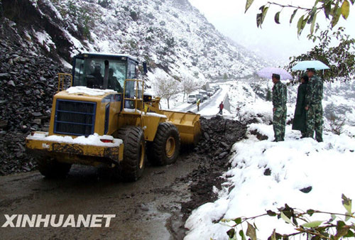川藏公路上由于突降暴雪引發(fā)一處泥石流。 新華社記者 葉輝 攝