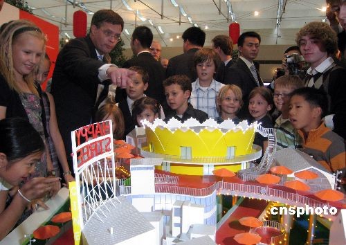 10月28日,荷蘭首相鮑肯內(nèi)德(左三)在上海為中國2010年上海世博會荷蘭館“快樂街”的模型揭幕,并向在場的荷蘭兒童講解荷蘭館的設(shè)計(jì)理念。荷蘭是全球首個(gè)向上海世博會組織者遞交參展展館規(guī)劃設(shè)計(jì)方案的國家,2007年11月荷蘭正式簽約參展上海世博會。28日,荷蘭政府代表還與上海世博局簽署了首份“網(wǎng)上世博會”項(xiàng)目合同。中新社發(fā) 許曉青 攝