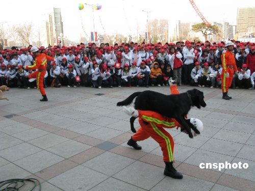 11月9日上午,以“關(guān)注消防,珍愛(ài)生命,共享平安”為主題的遼寧省沈陽(yáng)市“消防志愿者行動(dòng)”啟動(dòng)儀式在沈陽(yáng)師范大學(xué)文體館隆重舉行。省、市兩級(jí)公安消防、共青團(tuán)、教育、民政、文化、衛(wèi)生、婦聯(lián)、廣電、新聞出版、安全生產(chǎn)、工會(huì)、紅十字會(huì)等13個(gè)行業(yè)部門(mén)及4000多名消防志愿者參加啟動(dòng)儀式。啟動(dòng)儀式結(jié)束后,4000名消防志愿者現(xiàn)場(chǎng)進(jìn)行了滅火和疏散逃生演練,并展開(kāi)了志愿者消防宣傳互動(dòng)、消防知識(shí)問(wèn)答、滅火演練、搜救犬表演等異彩紛呈的宣傳活動(dòng)。 中新社發(fā) 趙敬東 攝