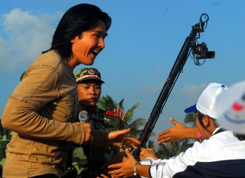 圖:費(fèi)翔海南島歡樂節(jié)上獻(xiàn)唱《故鄉(xiāng)的云》