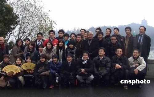 日本青少年友好使者杭州西湖留影。