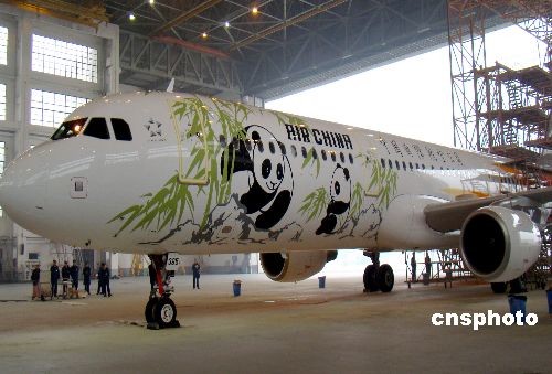 12月25日上午,以水墨畫(huà)風(fēng)格噴涂大熊貓母子竹林嬉戲圖案的第二架“秀美四川”號(hào)空客A三二一彩繪飛機(jī)在成都雙流機(jī)場(chǎng)向公眾亮相。據(jù)悉,該機(jī)將于本月二十七日正式投入航班運(yùn)營(yíng),計(jì)劃首班執(zhí)飛成都—上海航班,今后將主要安排執(zhí)飛成都—臺(tái)北航線(xiàn)。中新社發(fā) 王萌 攝
