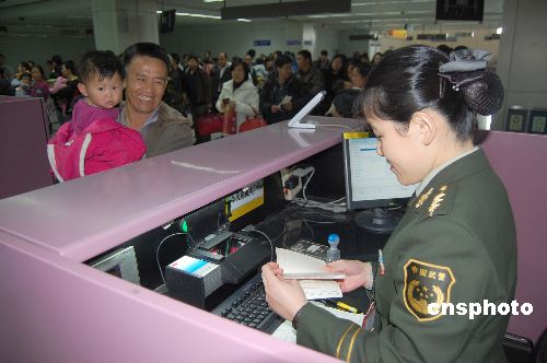 一月十一日,春運(yùn)首日,福州長樂國際機(jī)場迎來旅客入境高峰,入境旅客較平日大幅增長。針對春運(yùn)旅客入境高峰,福州機(jī)場邊檢站調(diào)整現(xiàn)場執(zhí)勤警力,開足通道,加強(qiáng)引導(dǎo),全力保障旅客快速通關(guān)。中新社發(fā) 龍景定 攝