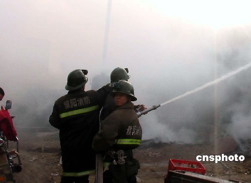 1月19日上午,河南濮陽市一家食品加工點——涼皮作坊的常壓鍋爐發(fā)生爆炸,爐體炸飛20多米高,最后落在30米遠處的一個大雜院屋頂上,將房頂砸塌。濮陽市消防支隊華龍區(qū)大隊官兵接報趕到現(xiàn)場后,安全疏散群眾。炸飛鍋爐散落煤炭引起的火災(zāi)在消防官兵的迅速處置下被撲滅,所幸事故未造成人員傷亡。中新社發(fā) 劉敬寬 攝