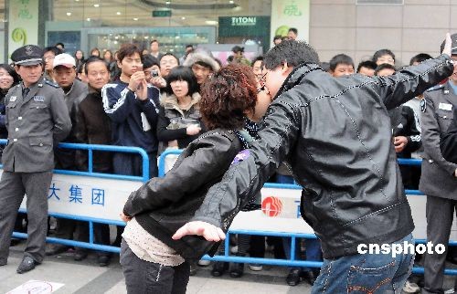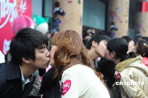 2月14日,杭州市首屆情人節(jié)“牛吻”大賽在武林銀泰、西湖銀泰、杭州百貨大樓三地同時舉行,活動吸引了80對情侶前來參加。 中新社發(fā) 引煒