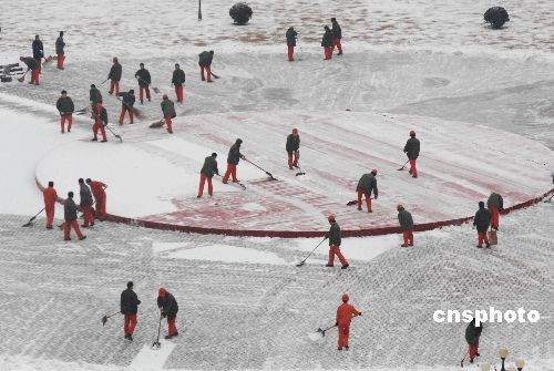 2月19日,東北特鋼集團大連基地員工們在清除積雪。當日,遼寧大連市再次降雪。兩天來,大連市各單位及廣大市民,以雪為令,及時清除責任區(qū)路面積雪,保障道路暢通和市容整潔。中新社發(fā) 劉德斌 攝