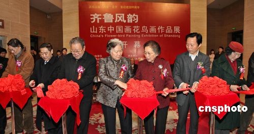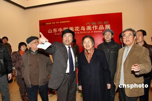 2009年2月25日上午,為慶祝全國(guó)“兩會(huì)”召開,迎接祖國(guó)60周年華誕,由中共山東省委宣傳部、山東省文化廳、山東省文聯(lián)主辦,山東省美協(xié)承辦的“齊魯風(fēng)韻--山東中國(guó)畫花鳥畫作品展”在中國(guó)美術(shù)館開幕。開幕式由山東省美協(xié)常務(wù)副主席兼秘書長(zhǎng)孔維克主持,全國(guó)人大原副委員長(zhǎng)何魯麗、全國(guó)政協(xié)原副主席郝建秀、中共中央組織部原部長(zhǎng)張全景、文化部副部長(zhǎng)王文章、山東省人大副主任溫孚江等領(lǐng)導(dǎo)出席了開幕式。中新社發(fā) 王保勝 攝