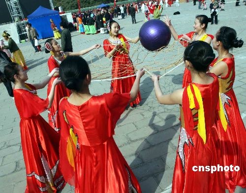 三月二十日,是中國二十四節(jié)氣中的春分。北京春分朝陽民俗文化藝術(shù)節(jié)閃亮登場,為中國這一第一批非物質(zhì)文化遺產(chǎn)的傳承提供了展示的天地。北京春分朝陽民俗文化藝術(shù)節(jié)于二零零七年開始首創(chuàng),直至今年已經(jīng)舉辦了三屆。圖為少女們在北京春分朝陽民俗文化藝術(shù)節(jié)上進(jìn)行表演。中新社發(fā) 任海霞 攝