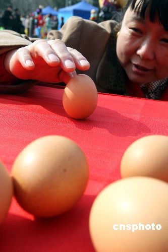 三月二十日,是中國(guó)二十四節(jié)氣中的春分。北京春分朝陽(yáng)民俗文化藝術(shù)節(jié)閃亮登場(chǎng),民眾紛紛“豎”雞蛋迎春分!按悍值剑皟呵巍,中國(guó)春分時(shí)節(jié)的“豎蛋游戲”,目前已成為世界性的游戲。中新社發(fā) 任海霞 攝