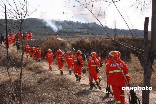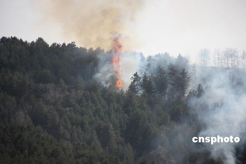 2009年3月28日下午2時(shí)左右,山西省盂縣東梁鄉(xiāng)東梁村騎龍山發(fā)生森林火災(zāi)。 森林火災(zāi)發(fā)生后,當(dāng)?shù)卣、公安、林業(yè)、醫(yī)務(wù)等部門(mén)第一時(shí)間趕到現(xiàn)場(chǎng),組織滅火,并啟動(dòng)了相關(guān)應(yīng)急預(yù)案。當(dāng)?shù)爻鰟?dòng)數(shù)百名干部群眾撲火,陽(yáng)泉市武警也趕赴現(xiàn)場(chǎng)增援。由于火勢(shì)兇猛,在附近的村莊都能聽(tīng)到火燒山林的聲音,山火的灰塵甚至飄到了最近的溫家山村。截至發(fā)稿時(shí),沒(méi)有人員傷亡報(bào)告。中新社發(fā) 程瑜 攝