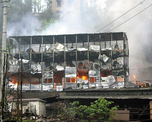 昨天(31日)上午,一場大火突襲重慶市石門大橋北橋頭下的民工宿舍,短短20分鐘內(nèi),兩棟三層樓高的活動板房遭完全燒毀,5位來不及逃生的民工從三樓跳下,其中3人摔成重傷。