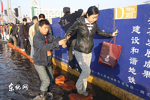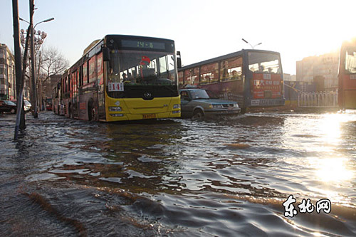 7日下午,網(wǎng)友劉峰向本網(wǎng)報(bào)料:15時(shí)許,哈爾濱市道外區(qū)南通大街與東直大街路交口附近,因施工導(dǎo)致供水管線出現(xiàn)爆裂,致使街路汪洋一片。大量的積水擋去了行人的去路,一些人力三輪車做起生意來(lái),每拉一位一元錢。17時(shí)許,漏水點(diǎn)被控制住,街路上的積水漸漸減少。由于交警在現(xiàn)場(chǎng)疏導(dǎo)車輛,沒(méi)有造成大面積堵車。