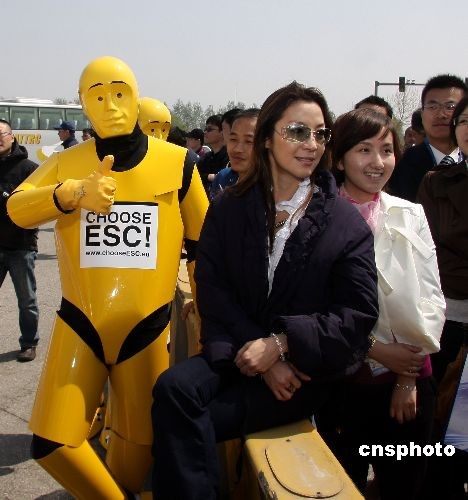 4月16日,楊紫瓊在北京交通部公路交通實(shí)驗(yàn)場(chǎng)出席“國(guó)家道路交通安全科技行動(dòng)計(jì)劃體驗(yàn)活動(dòng)暨國(guó)際汽聯(lián)汽車電子穩(wěn)定控制展示”活動(dòng),并擔(dān)任全球道路安全宣傳大使。本次活動(dòng)主題為“在中國(guó)推廣拯救生命的技術(shù)--電子穩(wěn)定控制(ESC)”。中新社發(fā) 張愛(ài)東 攝