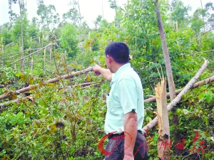 “半夜聽(tīng)到呼呼的風(fēng)聲,隱約看到有白影在移動(dòng),接著冰雹就砸下來(lái)了!碑(dāng)夜正在值守的中興村村委會(huì)書(shū)記馮文安回憶道。昨日凌晨2時(shí)50分至3時(shí)10分,一股強(qiáng)勁的龍卷風(fēng)在臨田村北部的山林出現(xiàn),從臨田村村邊的水田和果林掠過(guò)。