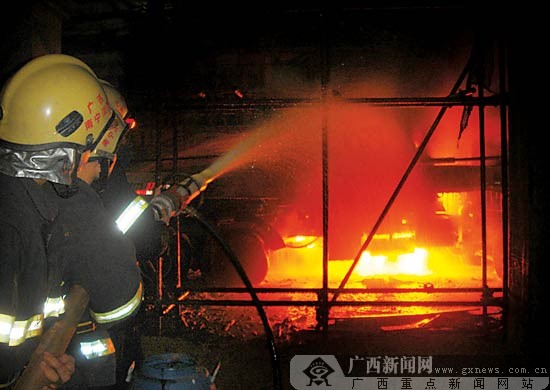 4月16日晚8時(shí)許,在南寧市仙葫開(kāi)發(fā)區(qū)東方外國(guó)語(yǔ)學(xué)院的工地上,一輛灌漿車不明起火,引燃了油箱。經(jīng)消防隊(duì)員一個(gè)多小時(shí)的撲救,大火在當(dāng)晚9時(shí)30分才被完全撲滅。